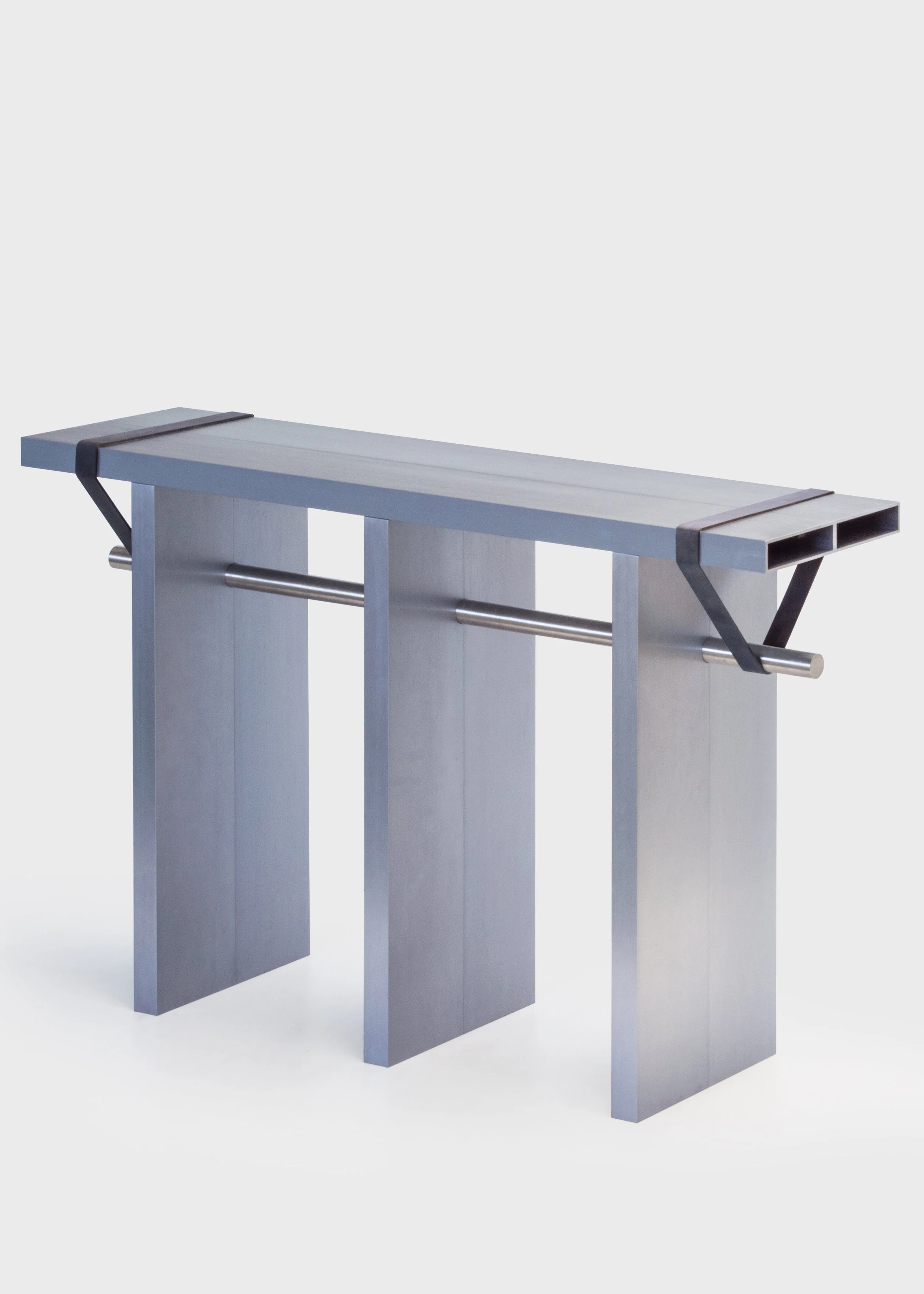 COLLECTIBLE avec un solo show du jeune designer français Johan Viladrich. Formé à la Design Academy de Eindhoven, Johan Viladrich a adopté une idéologie essentialiste dans ses créations, travaillant avec des volumes réduits à leur forme la plus simple, dans un style industriel épuré qui vise à révéler la beauté inhérente des matériaux à travers des traitements de surface raffinés et des combinaisons subtiles. La série Blueprint a pour but de visualiser un design émergeant davantage des normes et dimensions de matériaux standards plutôt que des choix arbitraires et stylistiques du designer. Des typologies existantes – bancs, étagères, tables…- sont reproduites à partir de profilés industriels standards. Tubes, méplats, cylindres, plaques ou planches, forment ainsi des structures fonctionnelles, visant à une utilisation rationnelle des éléments de production de masse. L’utilisateur est de ce fait négligé au profit d’un idéal industriel, les dimensions et proportions des objets n’accommodant plus dans ce cas un confort, voir même une ergonomie traditionnelle de fonction, mais une simple nécessité productrice.