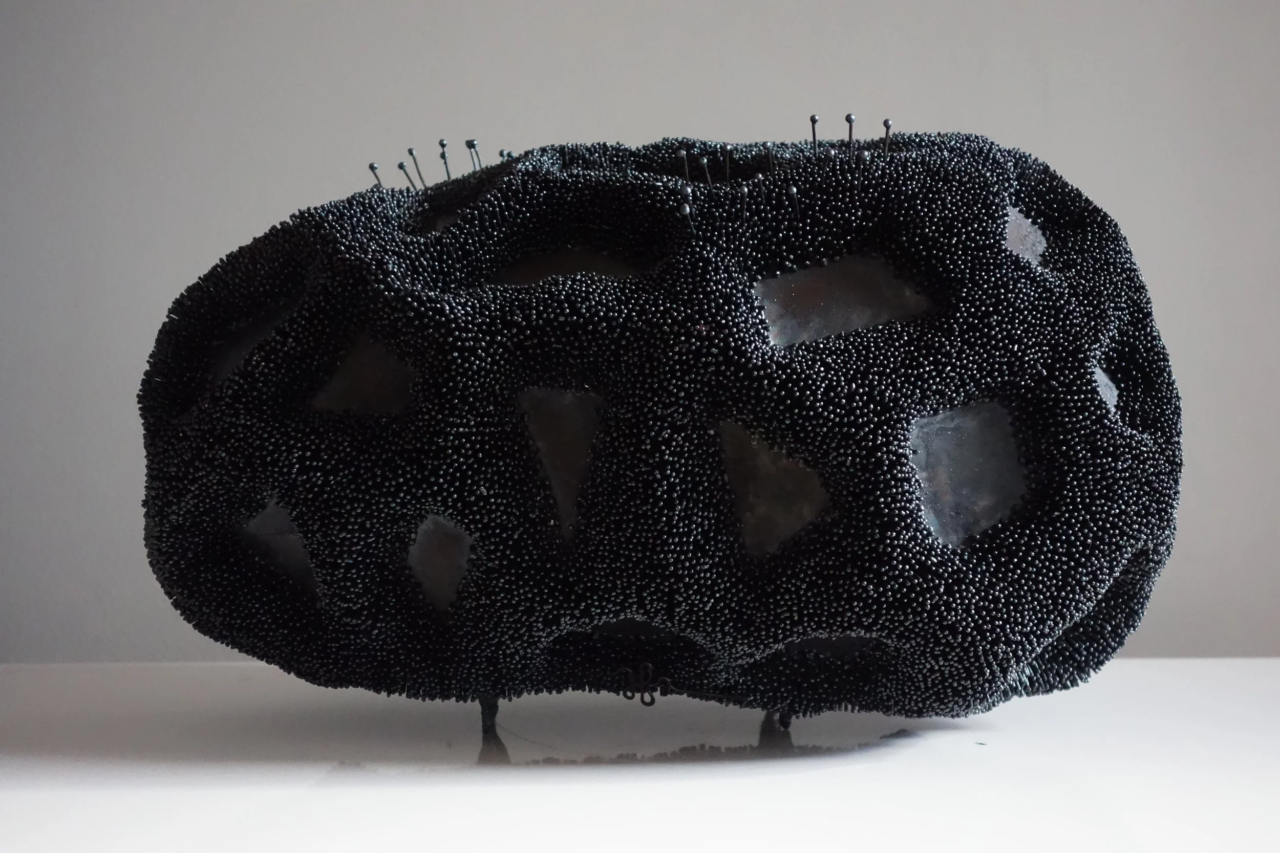 a une affection particulière pour les mauvaises herbes : ces plantes invasives qui, silencieusement, perturbent l’ordre établi de nos routes. De sa forge, elle transforme ces invasions en de magnifiques bouquets, comme autant de fragiles monuments. Ces bouquets nous invitent à voir ces étrangères comme des familières,
